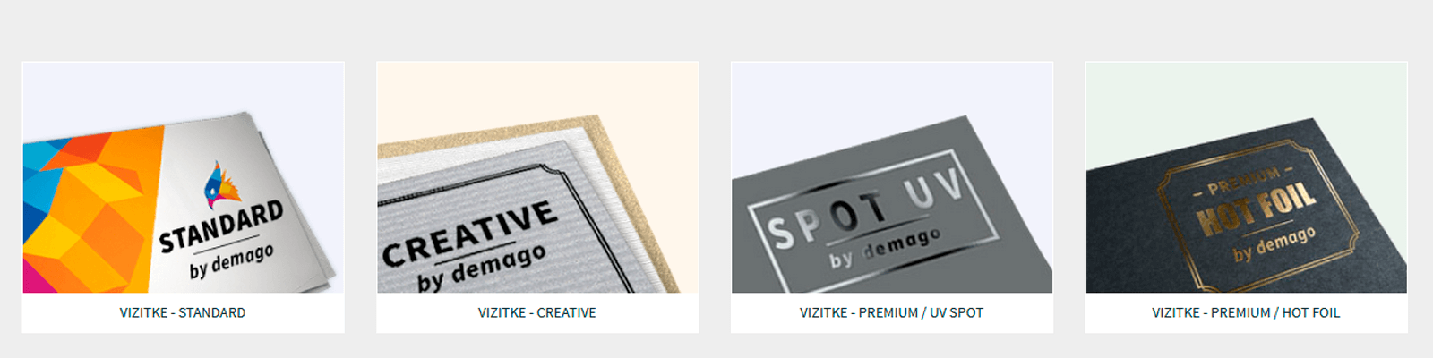 Ko ste na spletu poiskali domeno www.demago.si, je potrebno v zavihku Digitalni & offset tisk poiskati ime izdelka, v našem primeru je to vizitka.