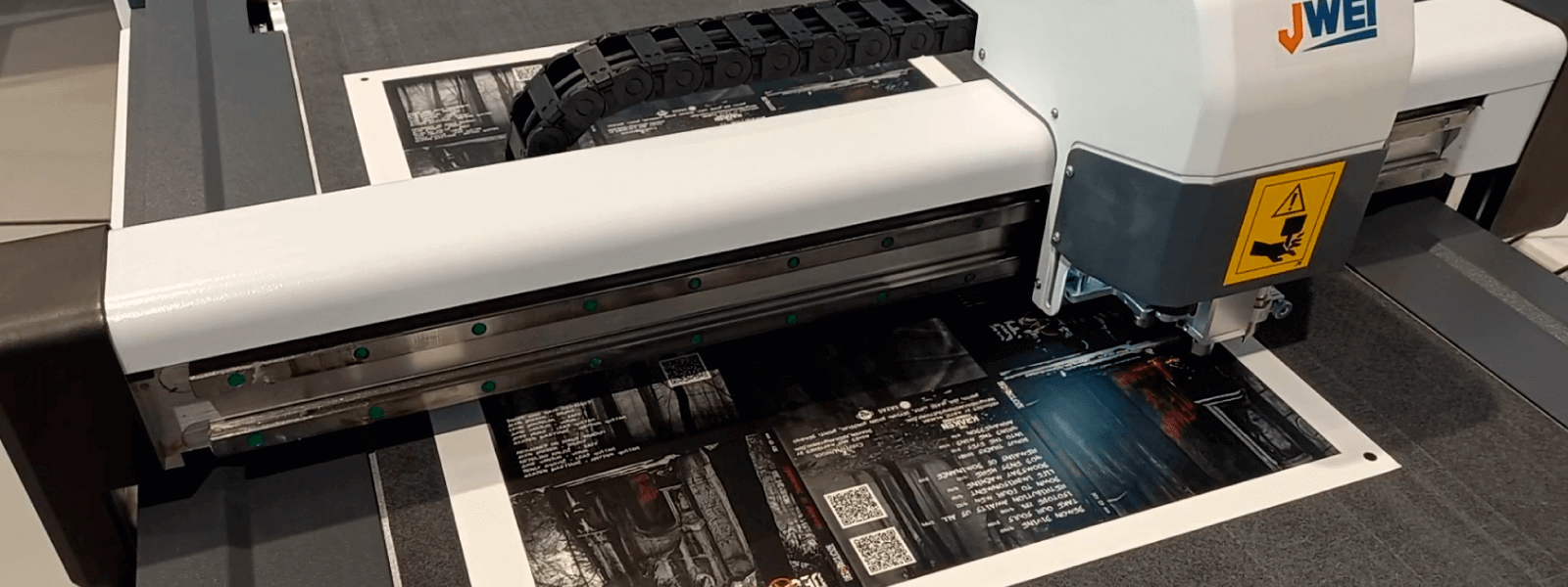 CNC rezalnik JWEI LST 0806 je kompaktna naprava namenjena za izrezovanje (thru cut), zasekovanje (kiss cut), biganje (creasing) in perforacijo materialov do formata 800x600 mm in debeline 1,5 mm.Stroj je opremljen z avtomatskim podajalnikom in CCD optično kamero, ki zagotavlja natančnost izreza znotraj 0,1 mm.Izrezovanje poteka s pomočjo tangencialnega nožka, s katerim lahko material izrezujemo ali zasekujemo, s pomočjo koleščka pa lahko tudi bigamo oz. žlebimo.Naprava omogoča hitro in natančno izrezovanje materialov, brez uporabe orodja za izsekovanje in je stroškovno učinkovita za izdelavo prototipov ali majhnih serij kartonske embalaže, kot so npr. zložljive škatljice, poslovne mape, darilne in vinske vrečke, zasekovanje samolepilnih materialov (nalepke poljubnih oblik)...Video predstavitev proizvajalca: link