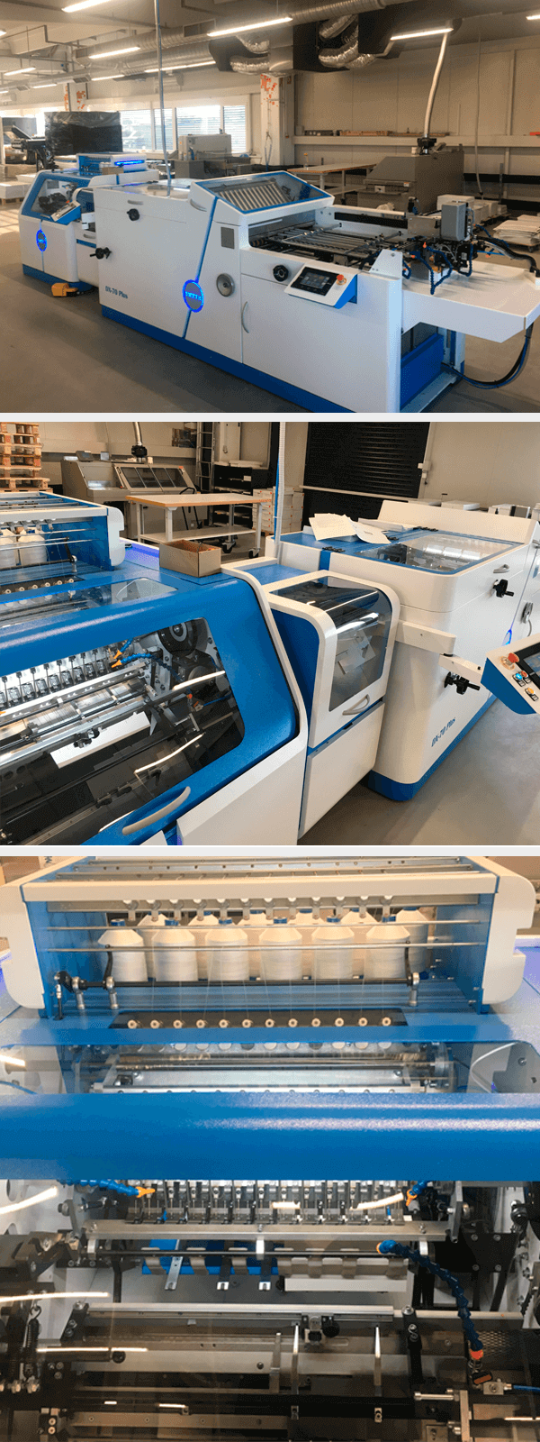 Za potrebe kvalitetne in hitre izdelave knjižnih blokov, smo v naš proizvodni proces namestili popolnoma avtomatiziran modularni knjigoveški sistem za šivanje z nitjo, s katerim želimo pokriti segment izdelave knjig v manjših nakladah.Šivalna linija je sestavljena iz dveh modulov in sicer s samodejnim vlagalnim sistemom digitalno natisnjenih pol, agregata za križno zgibanje v 8 stransko polo, pneumatskim nožem in šivalnega dela s šivalno glavo za konvencionalno šivanje z nitjo, ki omogoča perfektno prebadanje hrbta tanjših in debelejših zgibanih pol.Tehnične karakteristike:Format lista:4 stranska pola: max. 350x700 mm / 350x350 mm, min. 210x160 mm / 210x80 mm8 stranska pola: max. 700x500 mm / 370x220 mm, min. 270x220 mm / 135x110 mmGramatura papirja: od 50 g/m2 do max.180 g/m2Število šivov: max. 12Dolžina šiva: 24 mmPreberi več: DEMAGO gives the “thumbs up” TO SMYTH DX-70 PLUS FOR ITS “BOOK ON DEMAND” LINE